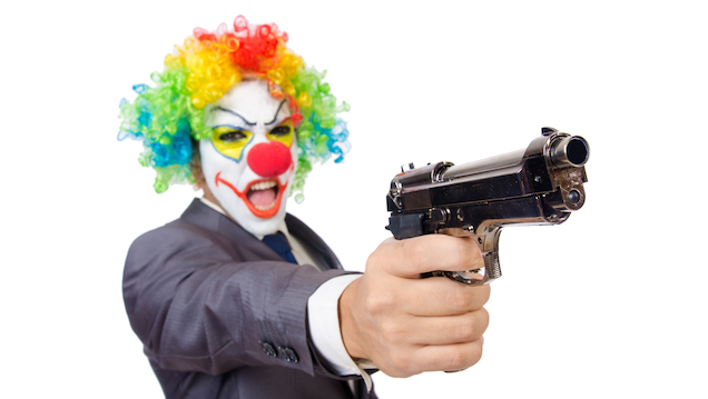 A 54-year-old drunken clown was arrested in Michigan this week for sitting in his garage and firing his pellet gun at a can on the street on what would have otherwise been a perfectly nice Monday morning.