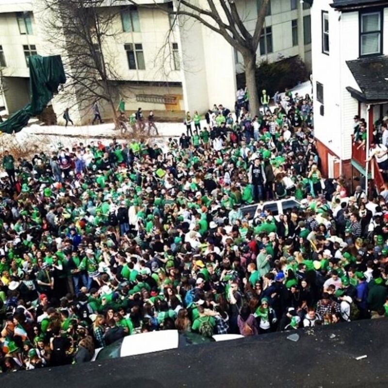 The University of Massachusetts flagship campus is located under two hours outside of Boston proper, where the yearly St. Patrick's Day parade will be held this coming Sunday. The disorder at Amherst continued into the early morning.