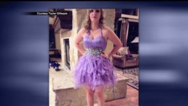 Tayler Gillespie, a student at Utah's Bingham High School, spoke to KSTU about the reaction she received after entering the dance in the dress pictured above: "They said I either have to go home and get something to go under, or I'm not allowed in."