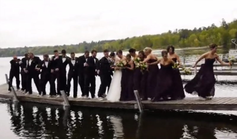 According to the Daily Dot, the unlucky couple were a pair of newlyweds named Dan and Jackie Anderson who tried to take a Pinterest-worthy wedding party photo on a not-so-sturdy pier. Although it seems at least one bridesmaid escaped her watery fate, the rest of the party plunged into the lake.