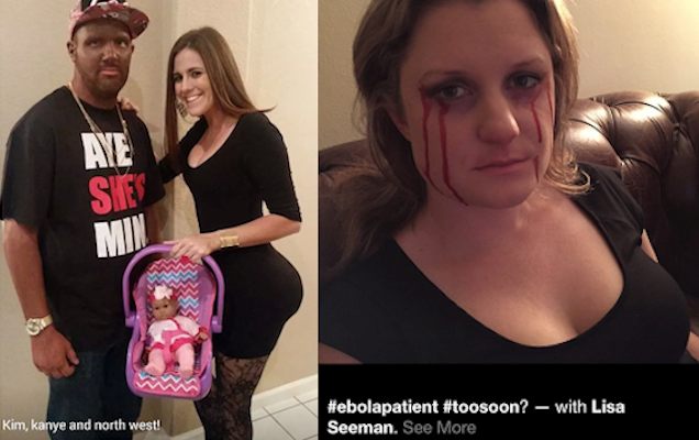 We predicted Friday that some fools might don Ebola hazmat suits for "laughs" this weekend. What we did not predict is that at least one tortured soul would dress up like an actual Ebola patient with fake blood pouring from her eyes.