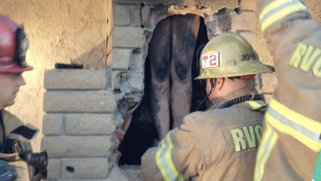"She said, 'I'm trapped in the chimney,'" Hernandez told KCBS-TV, "so I tried to get her out from the top but it was too hard."