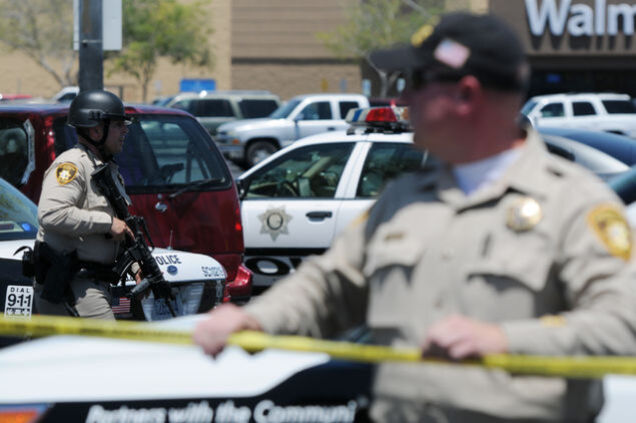 Update: According to police, the shooters were a couple, a man and a woman. After a gunfight with police in the Walmart, the woman shot and killed the man before turning the gun on herself.
