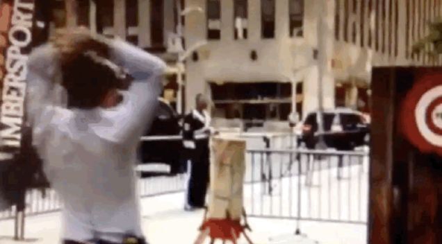 Pat, we were doing commercial bumps on Fox and Friends Sunday morning celebrating the Army’s 240th birthday and flag day. My leadership told me they were told there would be no axe throwing. I think the anchor person went rogue and decided to throw it. He had only thrown it once before in practice for an upcoming segment and they told him to throw it with more force. The vid you see is edited showing the Televised portion of the throw and then edited to a portion that was taken on someone’s phone of us being videoed. The part that was actually televised showed the overthrown axe and then segued to us for the drum solo bump, only showing me walking behind the section holding my arm. The actual part where the axe hit me was not televised. Poor decision, obvious negligence, should not have happened, could have been avoided. When shooting or throwing, always know what is behind your target. Basic safety rule. I’m feeling blessed on Father’s day with my 5 children, alive, and with all limbs.