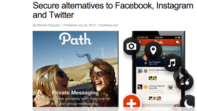 FoxNews.com has a handy service post about PRISM-proof messaging and photo applications aimed at upstanding Americans outraged at Obama's spy network, or maybe terrorists. Either one.