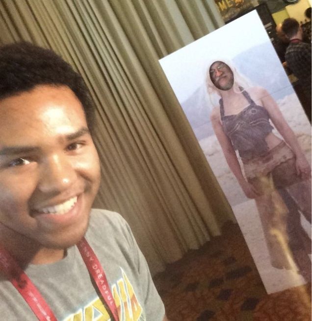 You just know he's planning on taking that standee home with him after the con.
