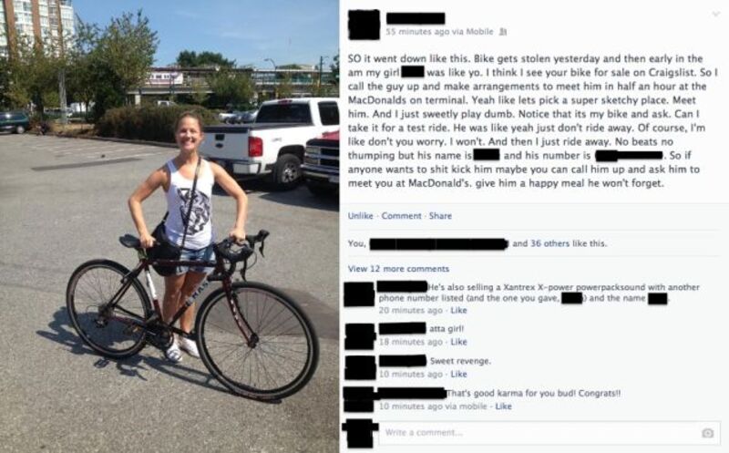 It all started last Wednesday when [redacted] had her beloved bike stolen just outside her friend's house in Yaletown, Vancouver.
