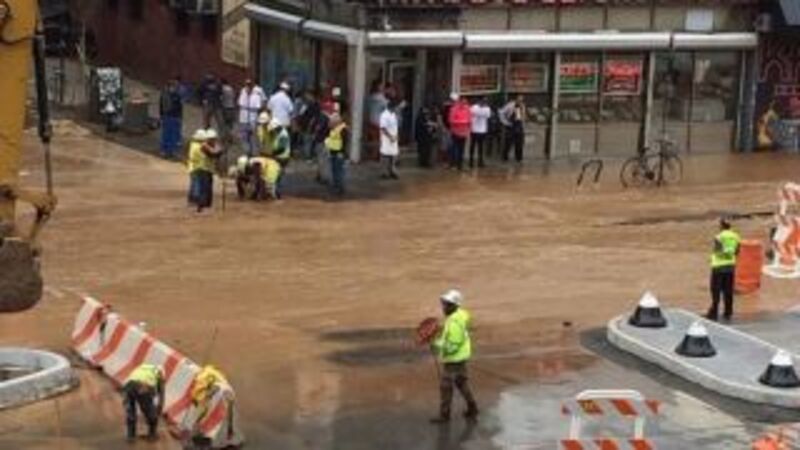 A water main broke on Houston Street this morning, flooding the Manhattan thoroughfare near Katz's Deli. Firefighters have responded to the scene and are working to pump water from the famous deli's basement. Adjust your commute accordingly.