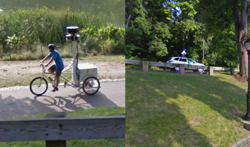 Last year in Central Park, a Google trike and a Google car crossed paths and managed to document one other documenting one other, screenshots captured by Google Street View World.