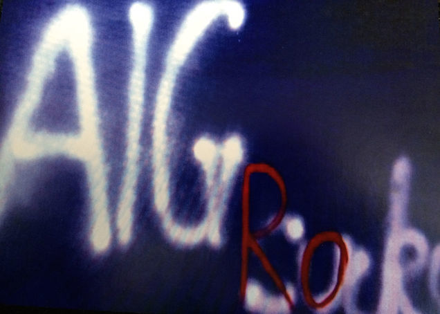 He sprayed a giant, white "AIG Sucks" on a six-foot by four-foot blue background. Over the first two letters of Sucks, Hancock painted a red "Ro," spelling out "Rocks" and revealing on canvas the aspirations that would occupy the next years of his life.
