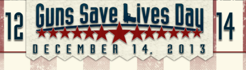 A trio of pro-gun groups has come together to declare December 14, the one-year anniversary of last year's horrific Sandy Hook Elementary School massacre, "Guns Save Lives Day." Because when you think about all the people saved by America's many, many handguns and rifles and shotguns, what springs to mind but the day when 26 innocent people—20 of them children—were slaughtered with guns?