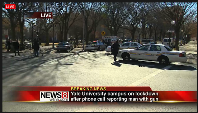 There are still no reports of an actual shooting or any injuries. The initial report of a gunman came from a phone booth near campus, according to Yale's emergency board: