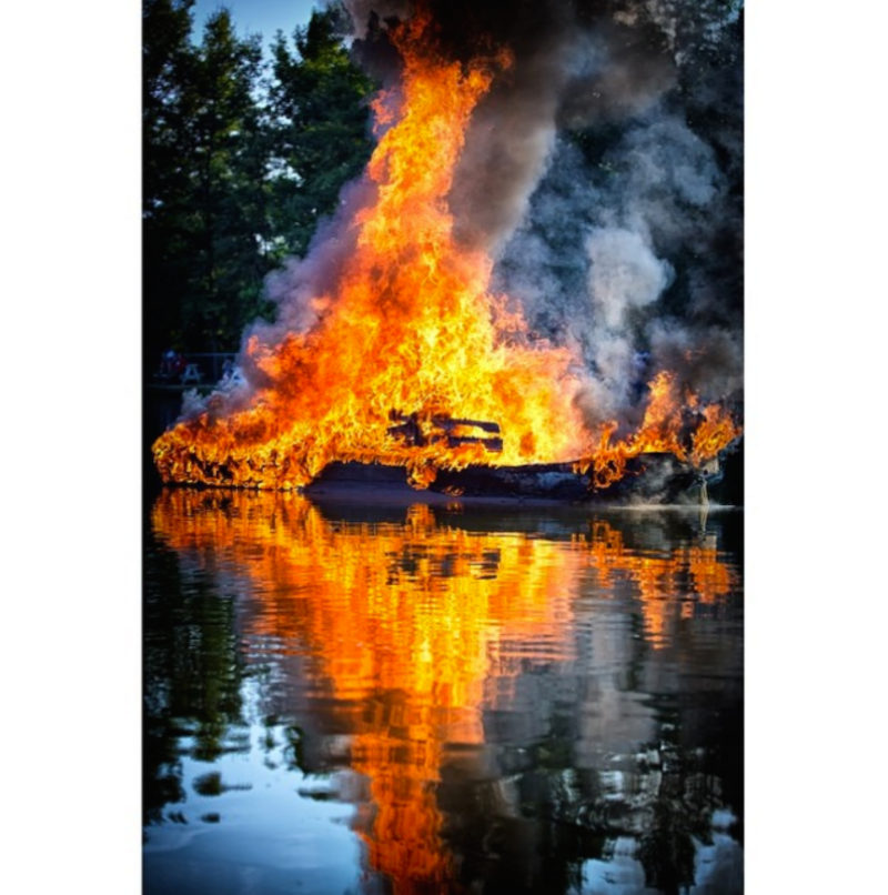 Tonight we sent Oderus home in a fitting manner at the public memorial for Dave Brockie. A blazing Viking ship with Oderus laid out in it, the cuttlefish pointing proudly straight up. Watching my friend Dave's costume go up in flames in front of a thousand fans was so much more intense for me than the private memorial for friends & family we had April Fool's Day. I spoke at both of them, as GWAR asked me to, & both times as I spoke I was sad. But watching his alter-ego burn tore me up way more than the first memorial, maybe because there was Dave, the human who was my friend who just "left us"- I never saw his body- & then there was Oderus, who was something entirely else. To watch his stage gear burn was like watching part of my life literally go up in flames. I was sobbing my eyes out as I took this photo. It was just a super-intense moment. Very beautiful, but overwhelming. Fly free, Oderus- you are missed.