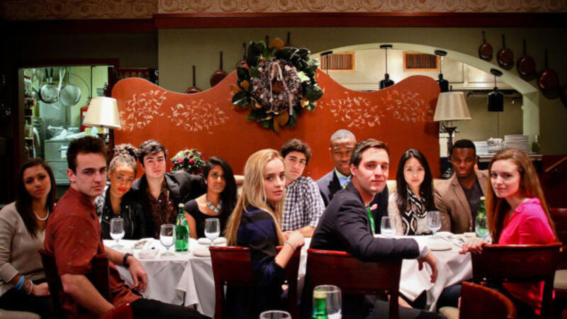 Looking at the image from a layman's perspective, there appear to be a number of quick fixes that might alleviate the discomfort caused by the freshmen's miserable hotness: the gentlemen could remove their blazers; the young women could tie their hair up in ponytails to get it off their necks; the student who wore a superfluous scarf to dinner could remove it.