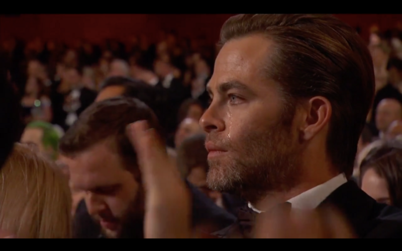 Many viewers were moved to tears while watching John Legend and Common's show-stopping performance of ''Glory'' at the Academy Awards, including David Oyelowo—who portrayed Dr. Martin Luther King, Jr. in the film Selma—and also The Princess Diaries 2: Royal Engagement star Chris Pine.