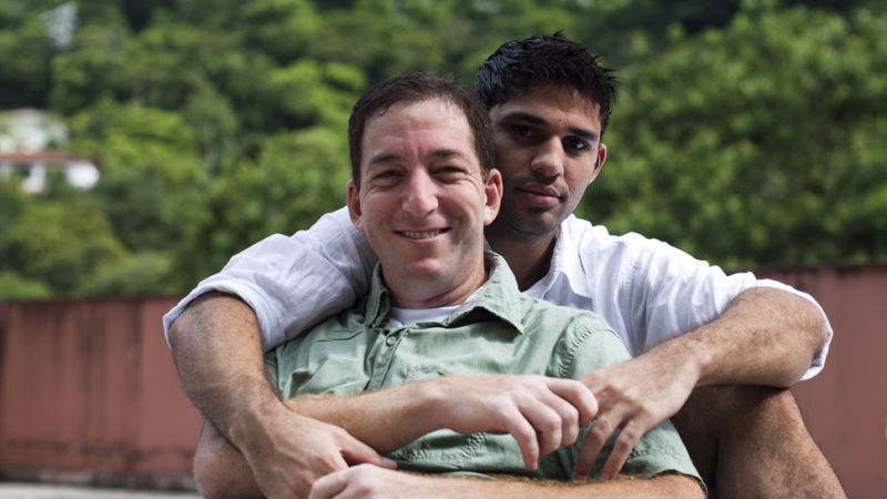 Here's journalist Glenn Greenwald with his boyfriend David Miranda, "at home in Rio." Greenwald, who just left The Guardian to launch a new publication with eBay founder Pierre Omidyar, has a cover profile in the coming issue of The Advocate. Next up: Brazilian Playboy (fully clothed). Image by Cale via Out.com.