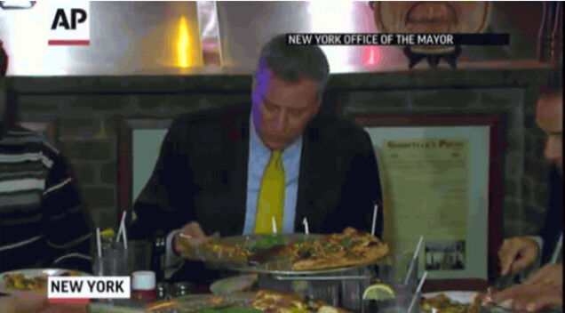 "De Blasio Skewered for Eating Pizza With Utensils," the Times trumpeted. And here, the Zapruder film of Pizzaghazi. Back, and to the left. Back, and to the left.