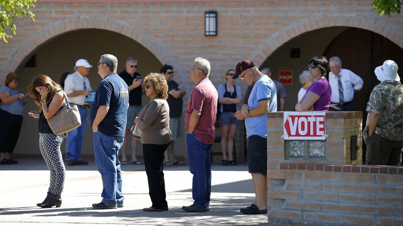 Dozens of people were lined up before voting started at 6 a.m. at a central Phoenix polling place, and hundreds were in line there by mid-afternoon.