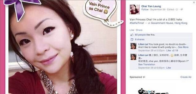 Hong Kong is currently in the throes of enormous demonstrations calling for democratic reforms and the ouster of Leung Chun-ying, its chief executive. Today, his 22-year-old daughter posted a very stupid thing on Facebook.