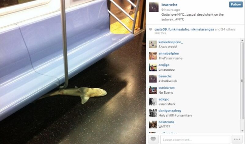 "Gotta love NYC...casual dead shark on the subway," Instagrammed user bsanchz after spotting the deceased animal on a Queens-bound N train late last night.