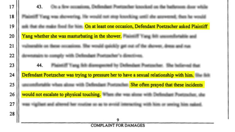 After the family relocated to the Bay Area, Yang says Poetzscher’s behavior remained unsettling and crude, to say the extremely very least: