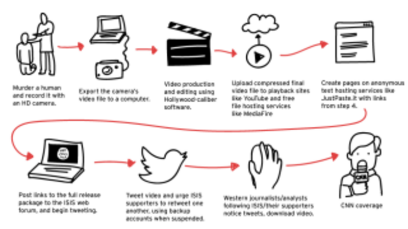 Yesterday I got a crash course in ISIS' viral methodology from Laith Alkhouri, who runs the Middle East desk at Flashpoint Partners, a security firm that monitors extremist activity online. Alkhouri spends many waking hours doing nothing but watching how ISIS shuttles information across the internet with impunity.