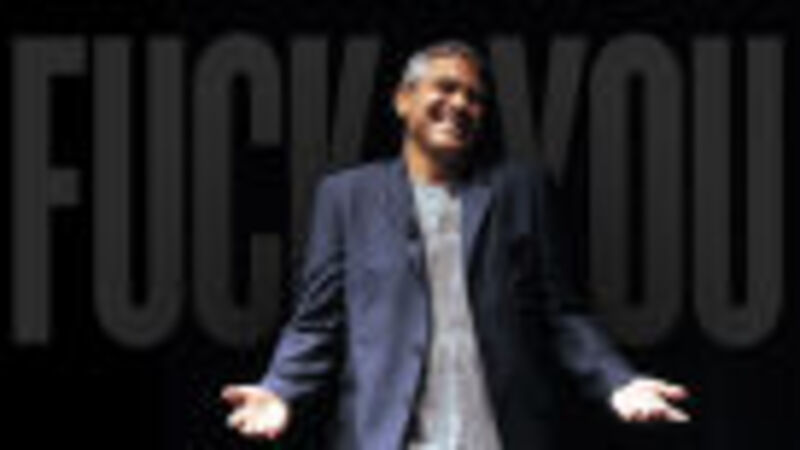 In order that those assembled might have the most epic weekend ever, Clooney imposes a strict "NO PHONES" rule on Kofi Annan when Annan visits him at his Party Palace on Wealth Island: