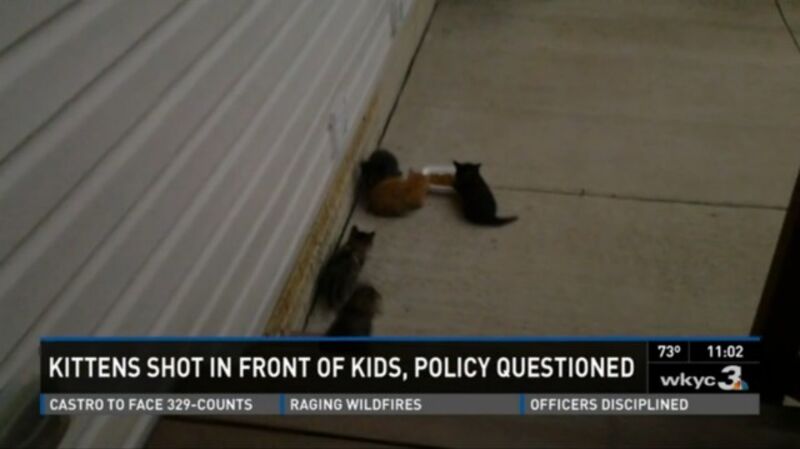 An Ohio mom wept as she recalled how a North Ridgeville Humane Officer shot and killed a litter of kittens in her backyard earlier this week while her children watched on in horror.