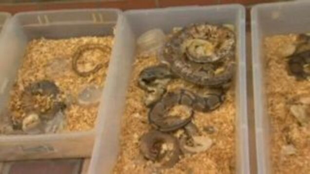 A schoolteacher was arrested after police found more than 400 pythons inside his suburban home. Only two of the pythons were alive.