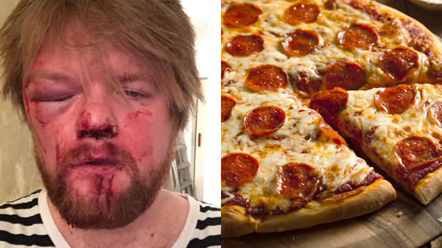 Two crust-coveting assholes succumbed to their inner Noids Wednesday night, brutally attacking a man for the crime of having some pizza, Scotland's Daily Record reports.