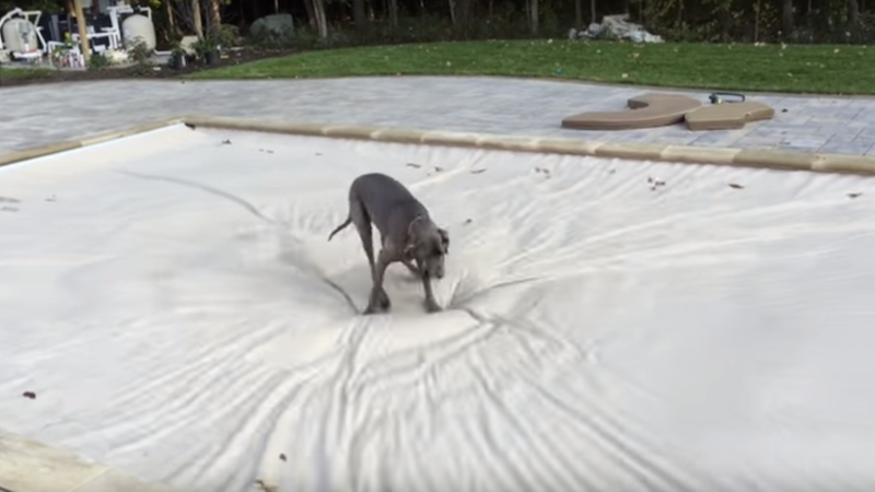 The dog, apparently named Nessie, plopped all 140 pounds of herself onto a covered pool, providing an mesmerizing glimpse at what it’s like to anesthetized.
