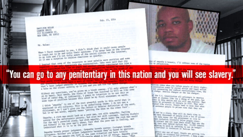 Under the 13th Amendment of the U.S. Constitution all prisoners in America are considered slaves. We look at slavery like its a thing of the past, but you can go to any penitentiary in this nation and you will see slavery. That was the reason for the protests by prisoners in Georgia in 2010. They said they were tired of being treated like slaves. People need to know that when they sit on trial juries and sentence people to prison time that they are sentencing them to slavery.