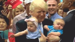 Trump: Don’t worry about that baby, I love babies. I love babies. I hear that baby crying. I like it. What a baby, what a beautiful baby. Don’t worry, don’t worry. The mom’s running around—don’t worry about it, you know. It’s young and beautiful and healthy and that’s what we want.