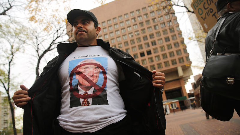 The premise behind broken windows, a theory of law enforcement popularized by NYPD Commissioner Bill Bratton during his first stint atop the department in the 1990s, is that aggressively arresting people for minor crimes like drinking or urinating in public will lead to a decline in major crimes like rape and murder. The idea is that these “quality-of-life” crimes normalize lawbreaking, make it seem commonplace and not that bad, and that this normalization leads to an increase in lawbreaking of all kinds. If there are lots of broken windows in a neighborhood, vandals will continue to break windows; if the neighborhood is clean and friendly, people will be too. Under this worldview, the people who are rounded up and sent to jail for panhandling or jumping the turnstile because they can’t afford the fare are seen as necessary casualties for the cause of making the neighborhood safer.