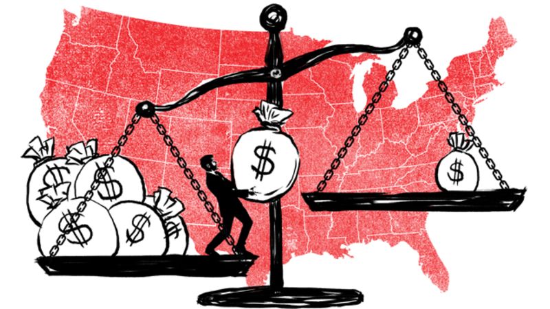 We will now engage in some purposely simplified back-of-the-envelope math. Imagine a nationwide, one-time infusion of wealth to those who live at the lower end of America's economic pyramid. Let's take as our starting point that black households have roughly 60% of the income and 5% of the wealth that white households do. (Hispanic households have just a tiny bit more wealth than black households. Median household net worth is about $81,000. Average household net worth, which is swelled by the fortunes at the top, is $535,000.) For the sake of argument, let's be exceedingly modest in our goals: let's imagine giving an amount of money that would give the average black household at least more than half of the wealth of the average white household. We can calculate this very neatly: if black households have 5% of white net worth now, let's add 50% to that, giving the average black household 55% the net worth of the average white household, which is something north of $110,000. Sticking with our neat, clean, and modest estimate here, let's round half of that down to $50,000.
