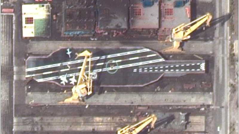 The replica, which appears to be 2/3 scale and made of steel—just like the real thing—was first spotted under construction last summer "at a shipyard on the Persian Gulf near the Strait of Hormuz," according to Stars and Stripes, but it wasn't until this spring that U.S. officials "saw the number 68 painted on it—the same number of the USS Nimitz, which was deployed in the region last summer."