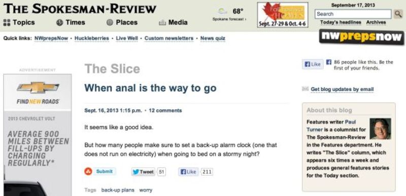 Sometimes, apparently, according to the Spokane, Wash., Spokesman-Review's Paul Turner. Something about digital alarm clocks?