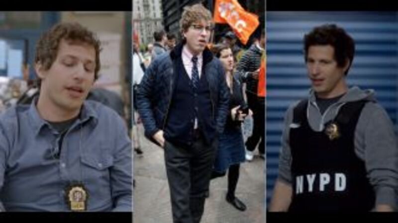 Andy Samberg, goofball extraordinaire and winsome crooner, is playing a cop in a new Fox show out this fall called Brooklyn Nine-Nine. Do not fear—he will not attempt to play the grizzled, tough talking, late-hours-keeping cop of your normal television drama. It's a comedy! Samberg plays a police officer steeped in lackadaisical attitudes and a particularly hip/ironic dress code (leather jacket, "secret tie"). With a propensity to goof and a priority for dressing in his own styles, Samberg seems to be channeling the infamously dapper Hipster Cop.