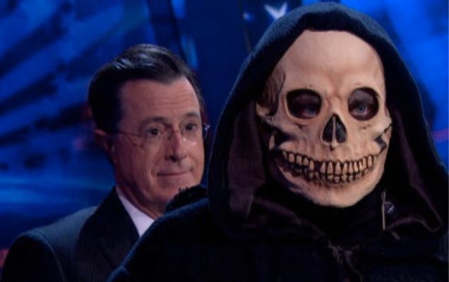 Colbert hinted strongly at his own death in October, when he promised the final 32 episodes would be full of "massive foreshadowing," then panned over to Grimmy flipping an hourglass and doing the ol' finger-across-throat gesture.