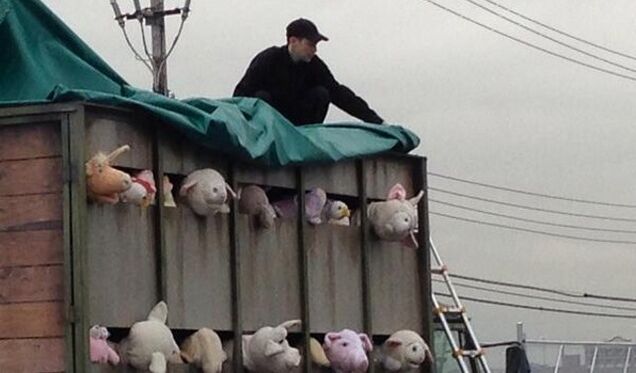 There are three things we know for certain: That is Banksy's truck; that is Banksy's installation; and that photo was taken at Banksy's warehouse. But one question remains: Is the man in this photo Banksy?