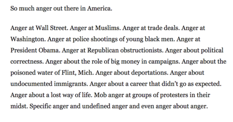 There is nothing inherently bad about newspaper series like this, save for one thing: they have at their very core a dishonest premise. They imply they will tell you something real about the essence of America. In fact, when you strip away the many paragraphs of self-importance that gird these sorts of projects, what they tell you is: what happened when one reporter went around America talking to some people about politics.