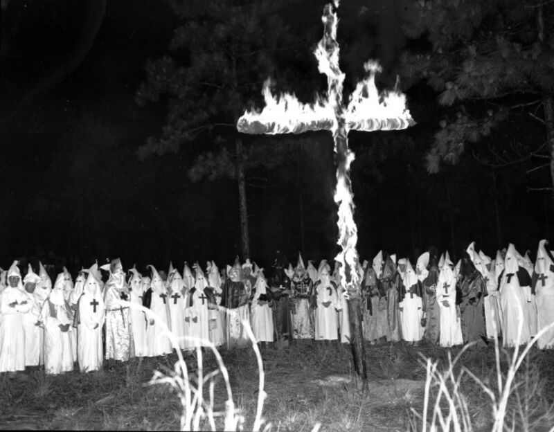 [Photo of a Jacksonville Klan rally, circa 1950: AP]