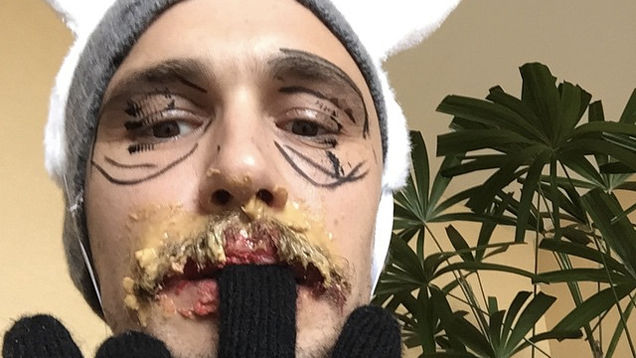 In an experiment seemingly inspired in equal measure by Marina Abramović and Subservient Chicken, James Franco obeyed the commands of random Internet users Saturday afternoon, smearing on makeup, licking a sock puppet and spraying himself with whipped cream just because some nice folks asked him to.
