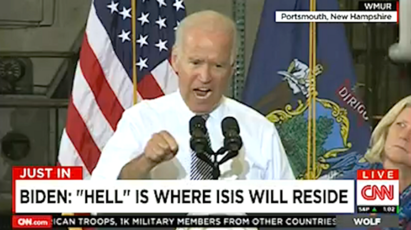 Biden continued, nailing ISIS to the wall: "We will follow them to the gates of hell until they are brought to justice." [yelling] "HELL IS WHERE THEY WILL RESIDE. [x2]" Didn't we tell you not to mess with Wilmington Joe?