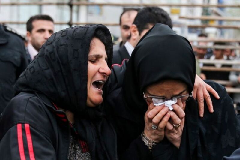 Kobra, whose son Bilal was convicted of murdering Abdollah Hosseinzadeh, embraces Abdollah's mother Samereh Alinejad after she pardoned the murderer. The last-minute pardon occurred just before Bilal was to be executed in public on Tuesday in the northern city of Nour, Iran. Image via ISNA, Arash Khamoushi/AP.