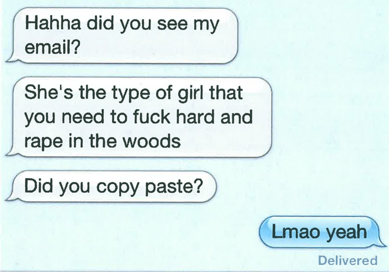 Much of the email correspondence details the idle sort of misogynist, homophobic shit-talk that outsiders, for better or worse, associate with frat life. References to "dripping wet pussies" and "pint sized axo sluts" abound. But some of the messages detail far more disturbing antics.