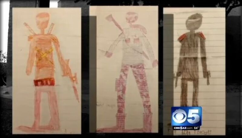 According to CBS5, the eight-year-old was called into a meeting with the headmaster at Scottsdale Country Day School over pictures he drew that depicted a ninja, a soldier, and "Star Wars character" — three things the boy wanted to be for Halloween.