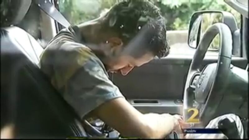 Liz Artz of Atlanta's Channel 2 Action News spotted a stalled Dodge pickup on the Buford Connector Saturday afternoon and called 911 to report that a man inside the vehicle was hunched over an drooling.