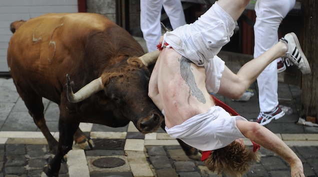 Here’s this year’s Running of the Idiots (at the Pamplona Running of the Bulls):