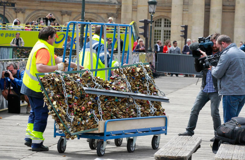 Now, the locks are no’mour. “We will remove nearly one million padlocks, or 45 tons,” city official Bruno Julliard told the AFP. Here’s to the breaking of the unbreakable bond of love:
